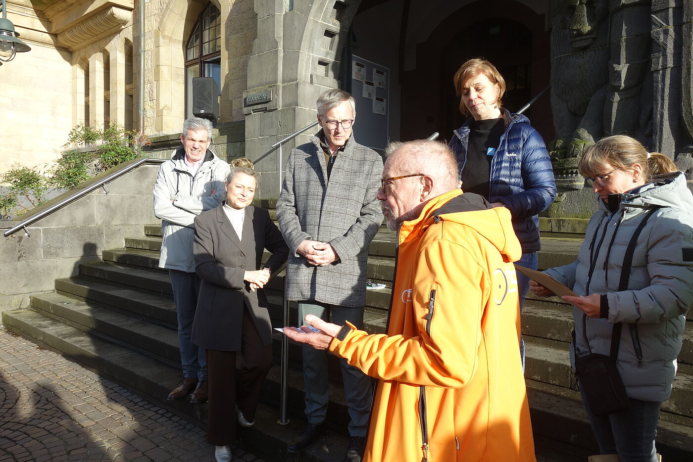 Zahlreiche Teilnehmer fanden sich zur Siegerehrung des Stadtradeln 2025 am 25. März 2026 vor dem Rathaus in Recklinghausen ein.